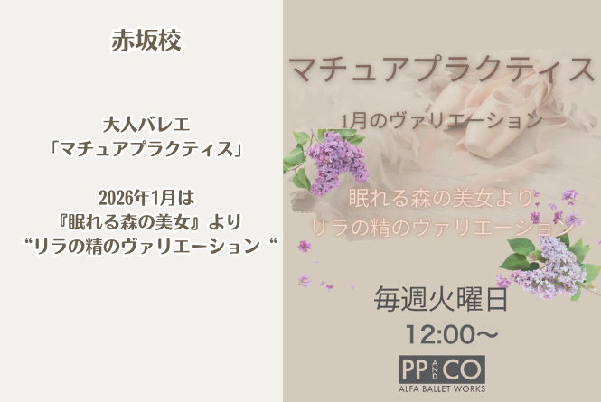 【赤坂校】大人バレエ「マチュアプラクティス」2026年1月は“眠れる森の美女”リラの精のヴァリエーション
